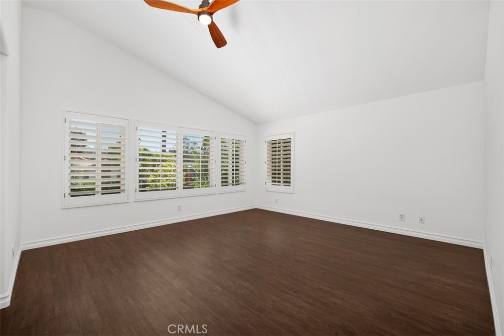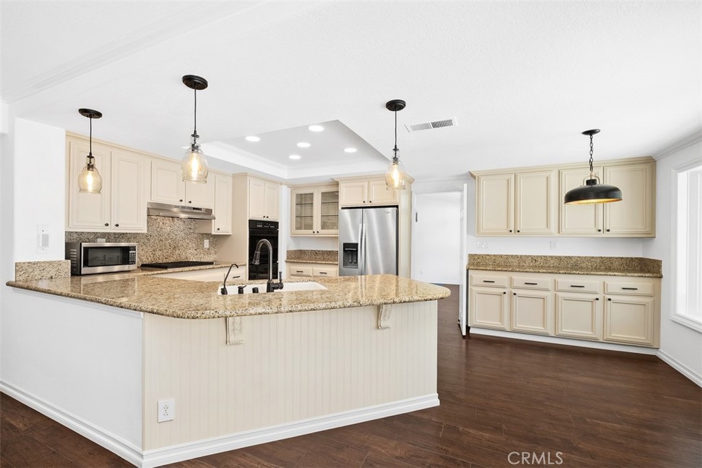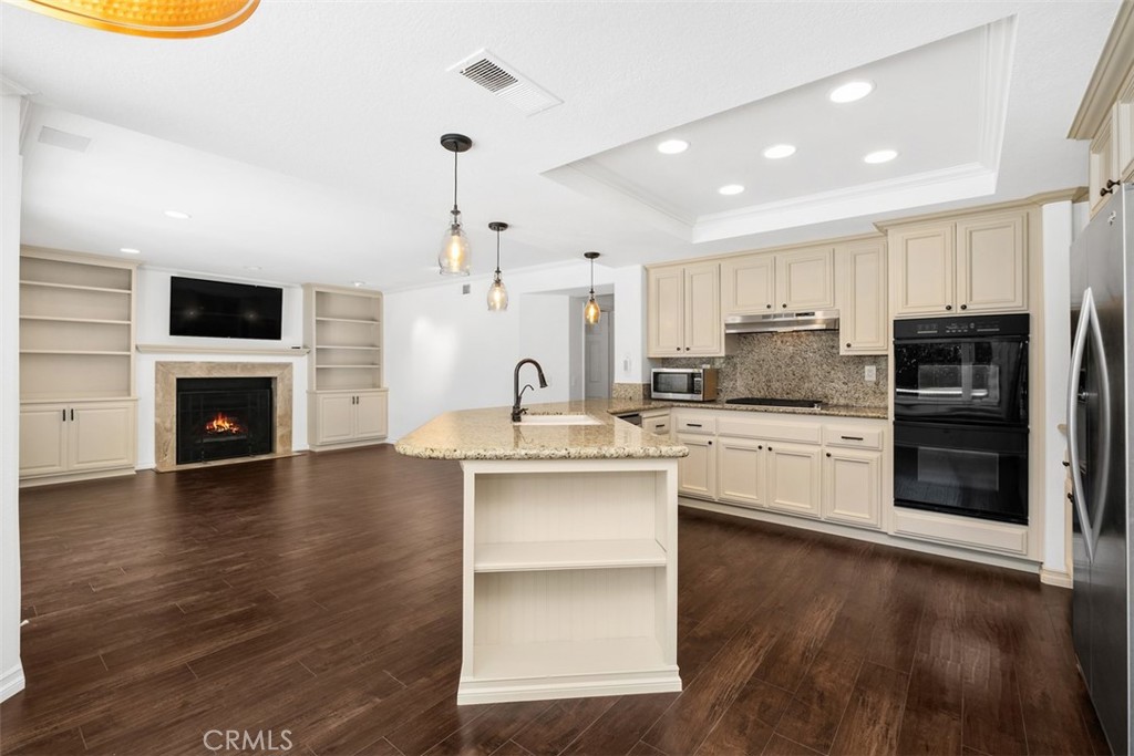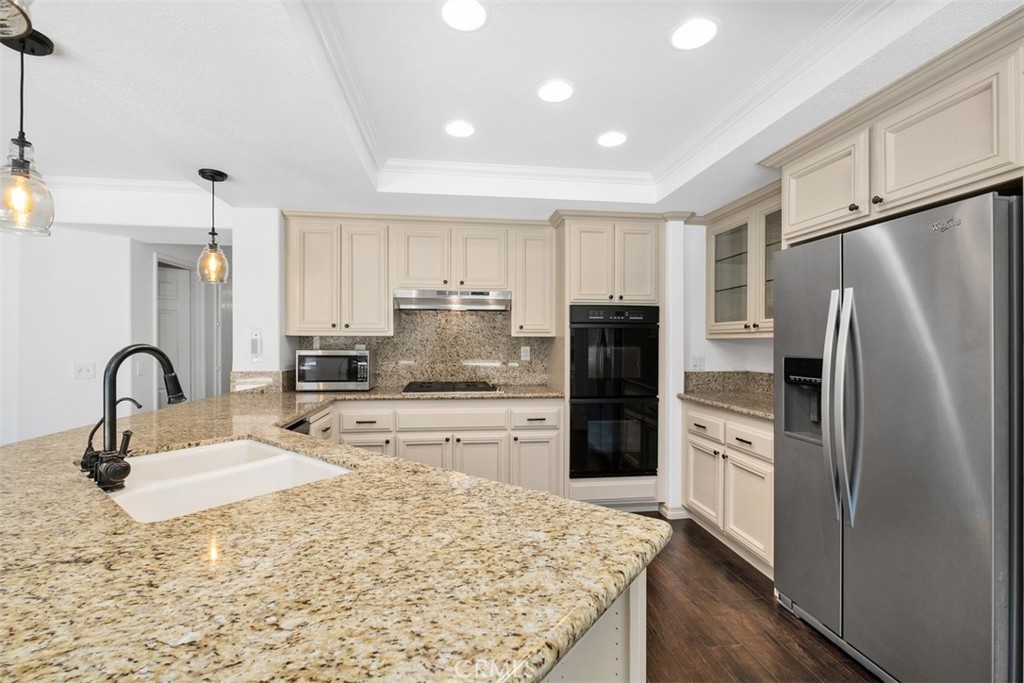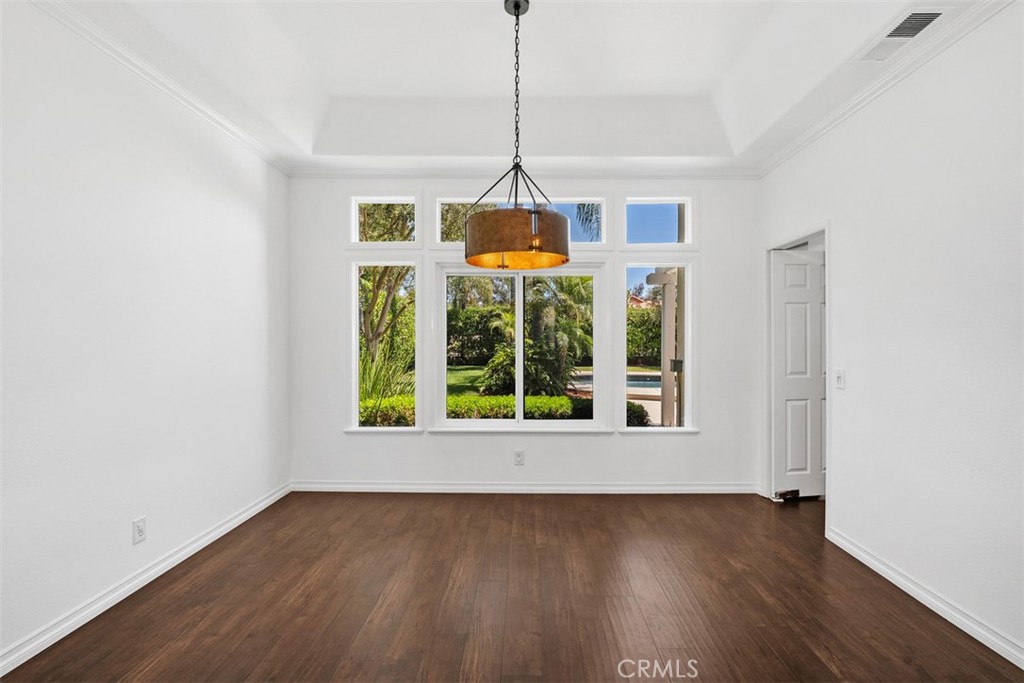 Welcome to your dream home in Laguna Niguel, where luxury meets comfort in this beautifully remodeled 5-bedroom, 3-bathroom residence. Step inside to discover luxury vinyl wood flooring throughout the main living areas, new carpet on the stairs and in all bedrooms, fresh paint, and upgraded lighting fixtures that add a modern touch to every room. The spacious living areas feature two gas wood-burning fireplaces adorned with polished stone accents, creating a warm and inviting ambiance. The versatile layout includes a fifth bedroom downstairs with an en suite bathroom, perfect for guests or multi-generational living. Built-in closet organizers and mirrored wardrobes in all bedrooms ensure ample storage space, while custom built-in office desks and shelves in two of the upstairs bedrooms make working from home a breeze. Ceiling fans in all upstairs bedrooms and plantation shutters throughout enhance the home's comfort and style. Enjoy casual meals in the kitchen nook featuring a cozy bay window. Step outside to a covered patio leading to your private outdoor pool and spa, an ideal setting for endless summer entertaining and relaxation. This home comes fully equipped with a refrigerator, washer, and dryer for your convenience. As a resident, you'll enjoy full access to The Club at Rancho Niguel, offering a state-of-the-art gym, community pools, tennis and sport courts, BBQ and party areas, and a welcoming clubhouse. This exceptional property offers everything you need for a luxurious and convenient lifestyle. Make this dream home yours and experience the best of South OC living.