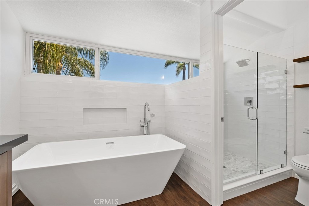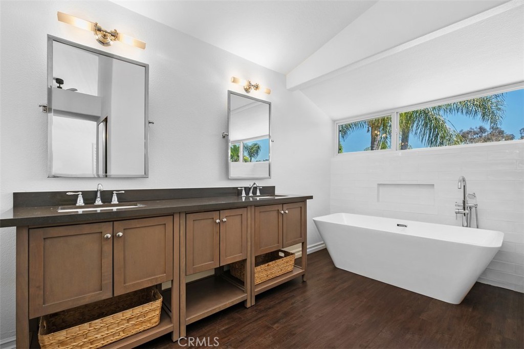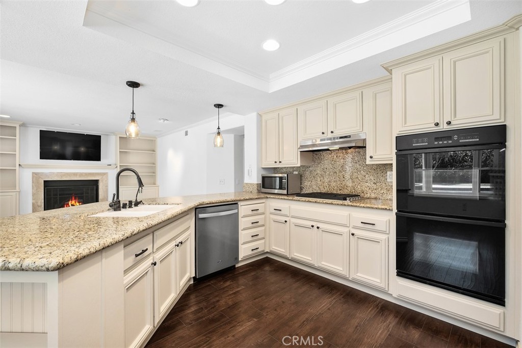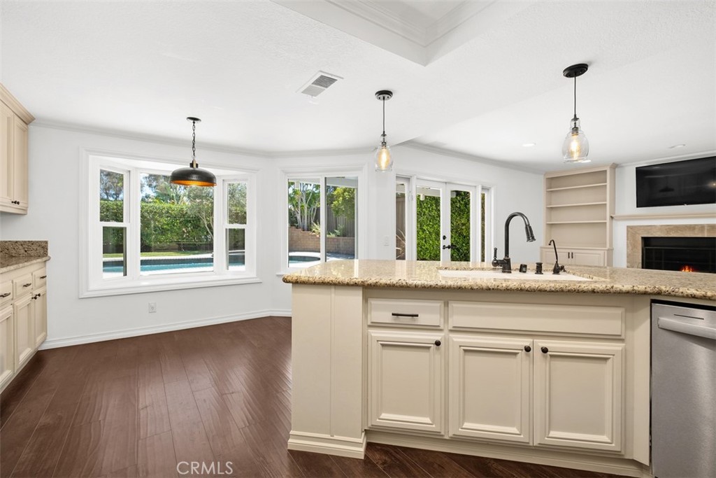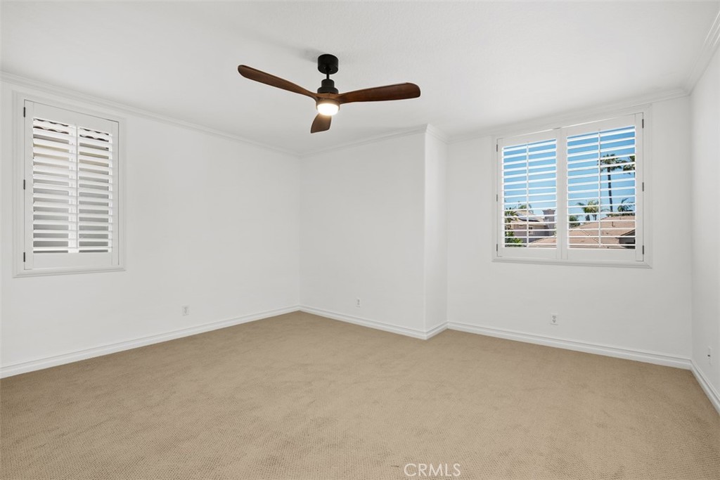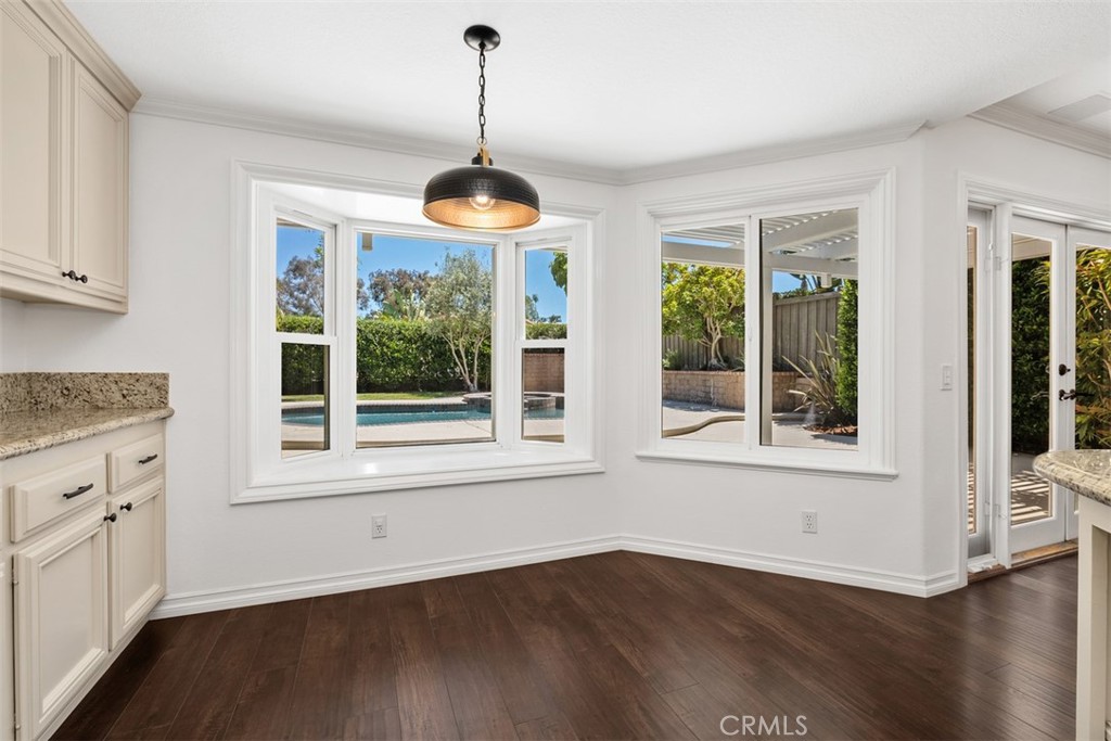 Welcome to your dream home in Laguna Niguel, where luxury meets comfort in this beautifully remodeled 5-bedroom, 3-bathroom residence. Step inside to discover luxury vinyl wood flooring throughout the main living areas, new carpet on the stairs and in all bedrooms, fresh paint, and upgraded lighting fixtures that add a modern touch to every room. The spacious living areas feature two gas wood-burning fireplaces adorned with polished stone accents, creating a warm and inviting ambiance. The versatile layout includes a fifth bedroom downstairs with an en suite bathroom, perfect for guests or multi-generational living. Built-in closet organizers and mirrored wardrobes in all bedrooms ensure ample storage space, while custom built-in office desks and shelves in two of the upstairs bedrooms make working from home a breeze. Ceiling fans in all upstairs bedrooms and plantation shutters throughout enhance the home's comfort and style. Enjoy casual meals in the kitchen nook featuring a cozy bay window. Step outside to a covered patio leading to your private outdoor pool and spa, an ideal setting for endless summer entertaining and relaxation. This home comes fully equipped with a refrigerator, washer, and dryer for your convenience. As a resident, you'll enjoy full access to The Club at Rancho Niguel, offering a state-of-the-art gym, community pools, tennis and sport courts, BBQ and party areas, and a welcoming clubhouse. This exceptional property offers everything you need for a luxurious and convenient lifestyle. Make this dream home yours and experience the best of South OC living.